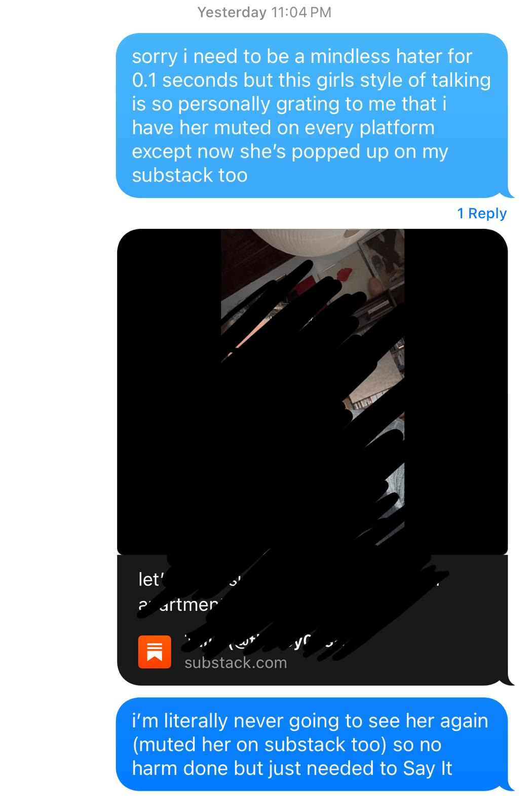 Some other things off the top of my head that regularly circulate my feeds, that I try to give less real estate in my mind to: Emily Sundberg’s Feed Me (she’s not writing for me), pop-sociology style articles on Vogue, The Cut etc (they over-intellectualize behaviour niche online behaviour), Hollywood gossip (nothing wrong with it, used to enthusiastically consume, my tastes have just changed), domestic US politics (in favour of domestic Canadian politics) (but this one is so hard), New York media drama (don’t care about Olivia Nuzzi).