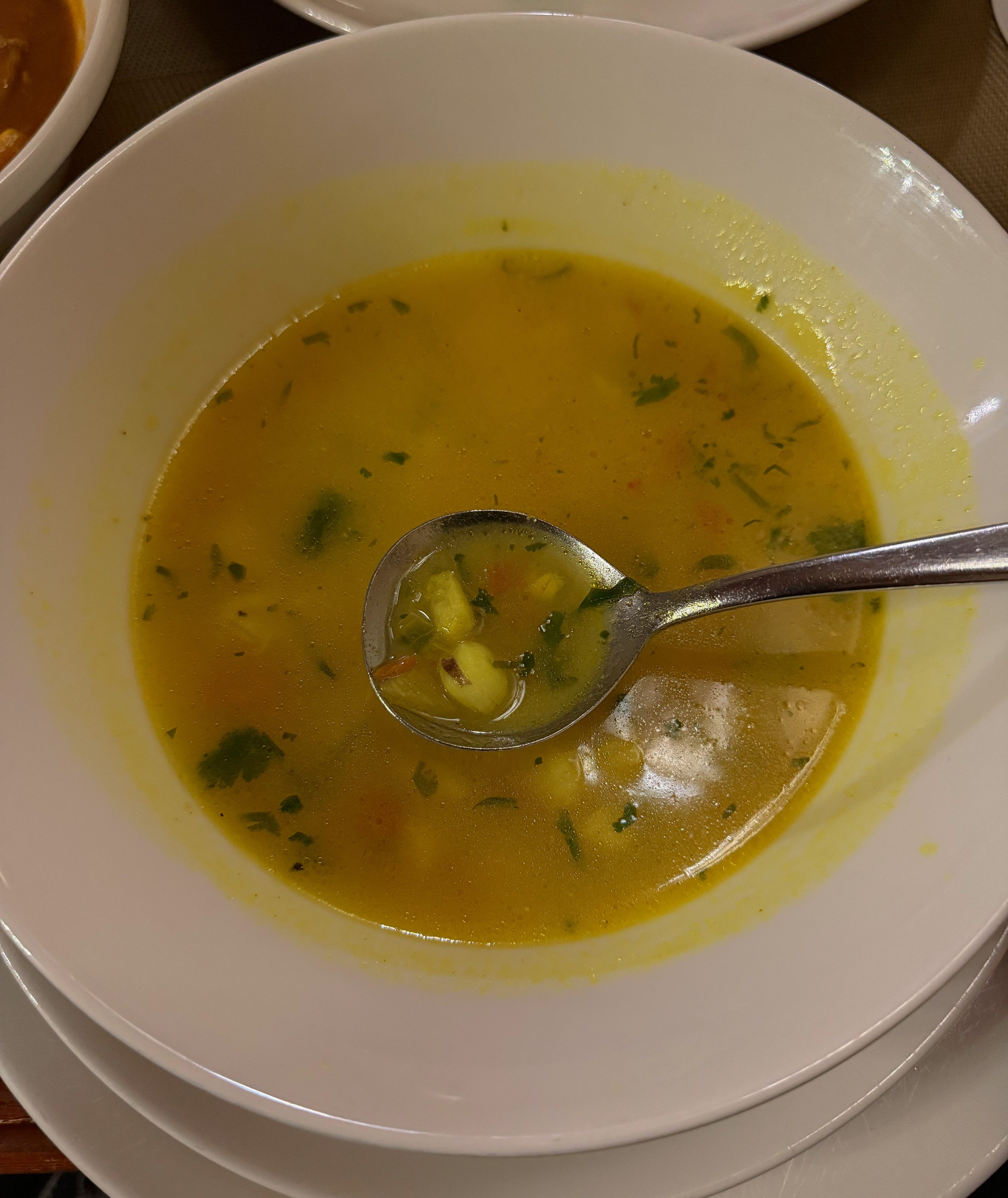 Back in the old Muttrah area of Muscat, my sister and I were famished. From our hotel, we walked along the corniche to Bait Al-Luban for dinner that we ate sitting cross-legged on a majlis. We ordered a full spread, but my favourite thing on the menu was babloh—a brothy, sour, unctuous turmeric-coriander fish stew made with both fresh and dried Omani limes. It was so good that we came straight back here the following night to order it again. Other things we got: manshab (a tuna fish stew cooked in a coconut milk broth of cinnamon and cardamom from Dhofar in the south), mchicha wa nazi (Zanzibari-style coconut-creamed spinach), gheleambe (a watercress-shallot-tomato salad marinated in a dried Omani lemon dressing). Nothing for dessert except the complimentary Omani dates they brought us with the bill.